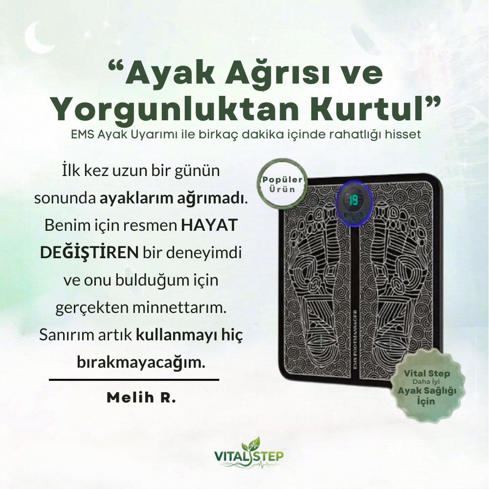 Yaşadığın ayak düşüklüğü yüzünden her gün eve hapsolmak zorunda değilsin. Vital Step, nazik elektrik darbeleri kullanarak çalışmayan sinirleri uyarır, kan dolaşımını artırır, zayıflamış kasları güçlendirir, ağrıyı, şişliği ve yorgunluğu azaltır. Üstelik tüm bunları evinin konforunda gerçekleştirirsin